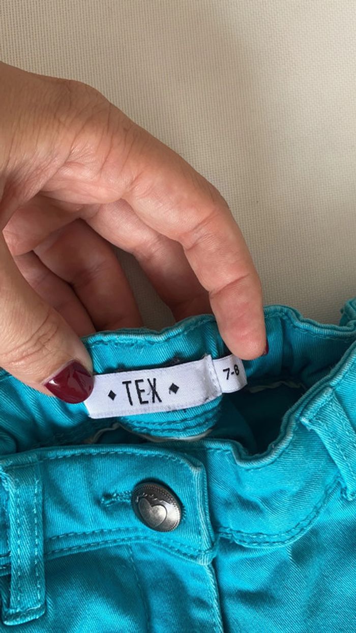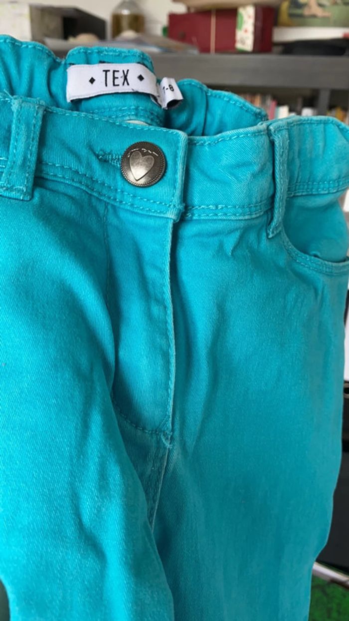 taille 7-8ans bon état, pas de defaut. joli turquoise taille réglable par élastique
