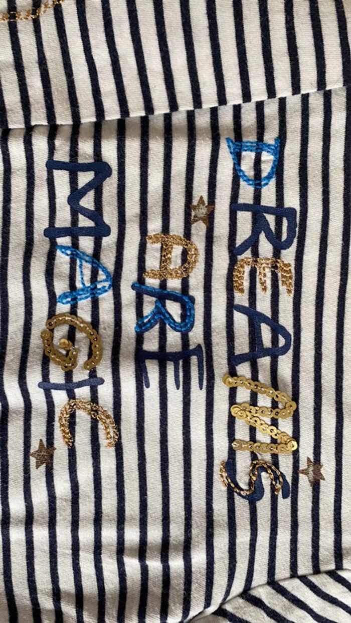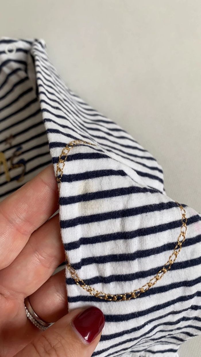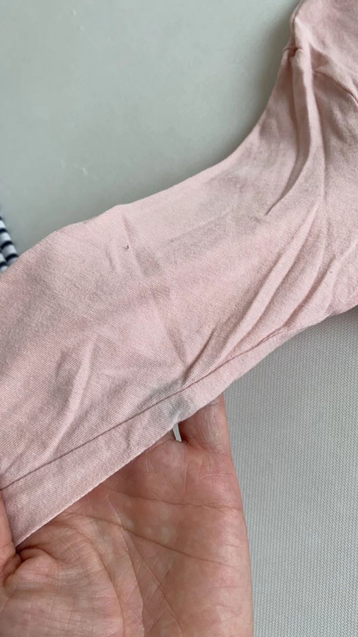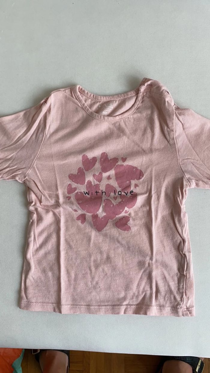t shirt marinière grain de blé 24mois, motif un peu usé au niveau des étoiles + petite tache au niveau du coude t shirt marinière rose tape a l’oeil 23 mois ras t shirt rose coeurs kiabi 24 mois, décoloration au niveau du coude t shirt bleu princesse tape a l’oeiil 23 mois ras