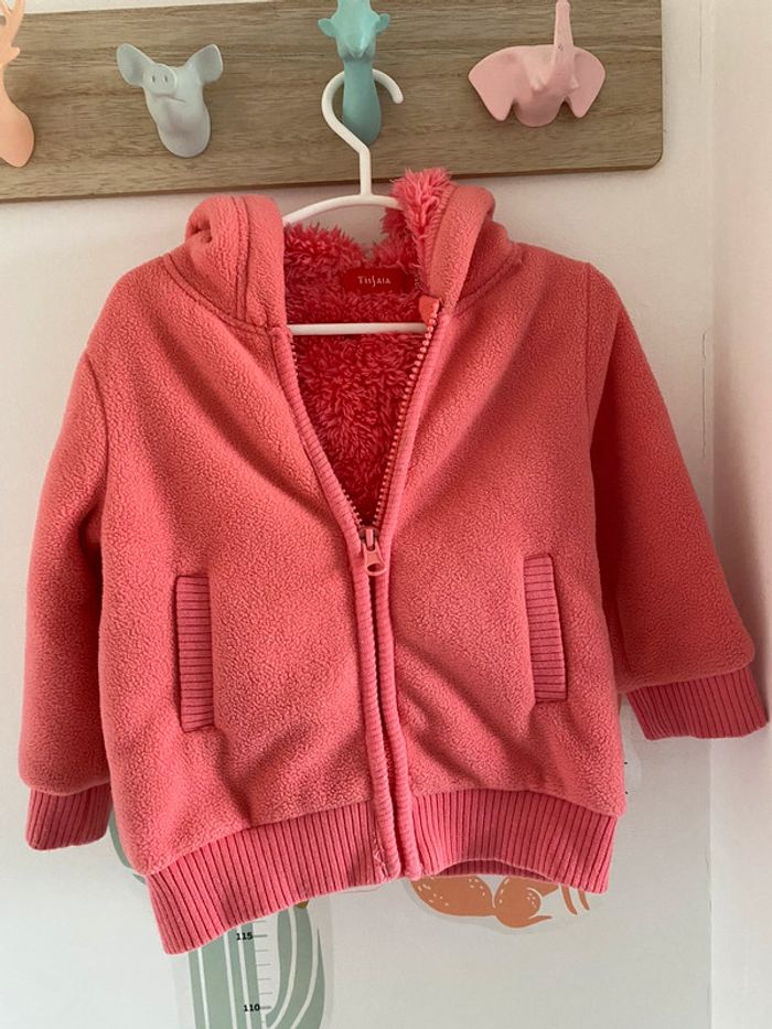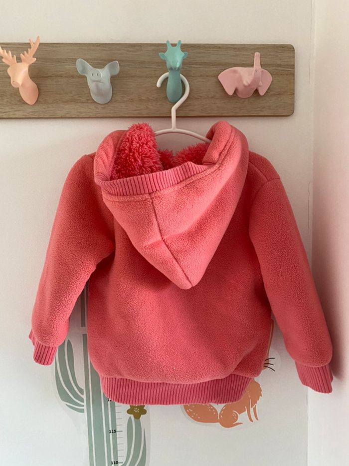 veste zippée rose extérieur polaire intérieur fausse fourrure, avec capuche