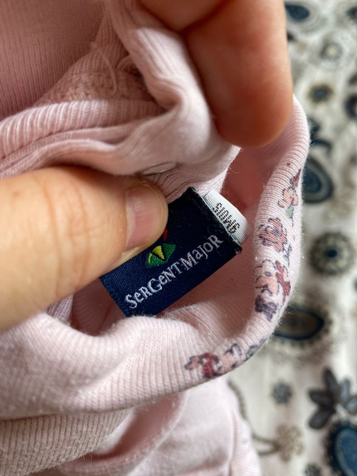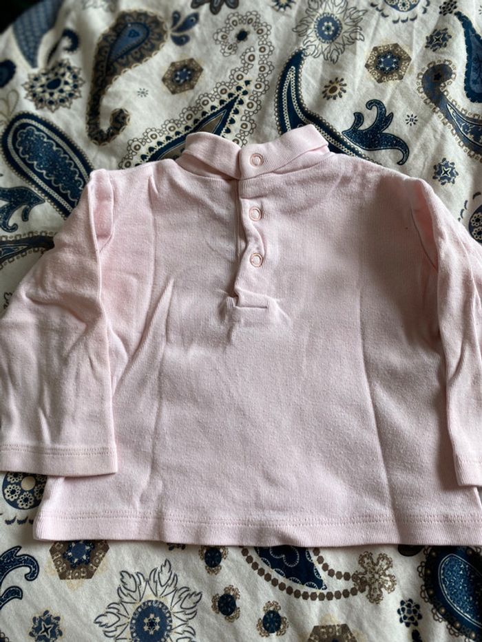 tshirt col roulé en bon état, rose avec des petits fleurs sur le col