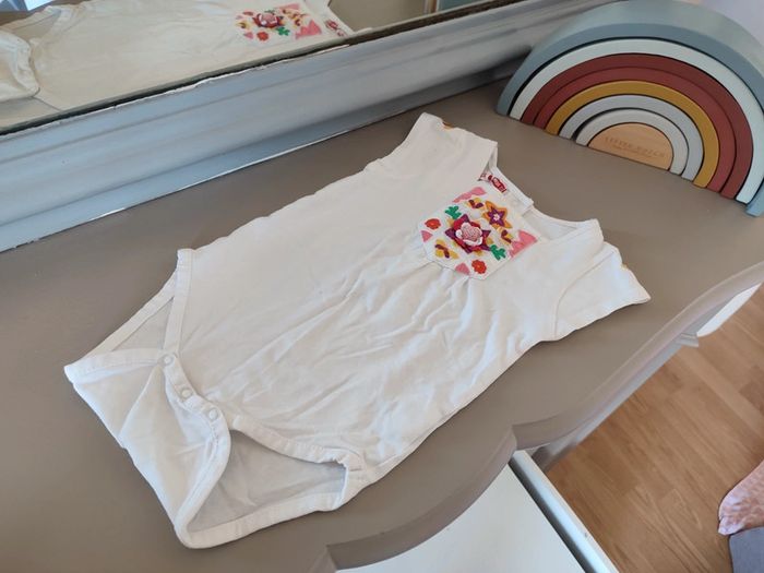 Magnifique body blanc avec motifs colorés DPAM. 6 mois. Parfait état, très peu porté ! Très jolis motifs sur le devant. Se ferme en bas et à l'arrière du body. #6mois_macys76