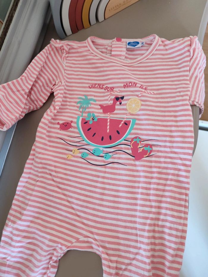 Pyjama rayé rose et blanc 6 mois Mots d'enfants - photo numéro 1