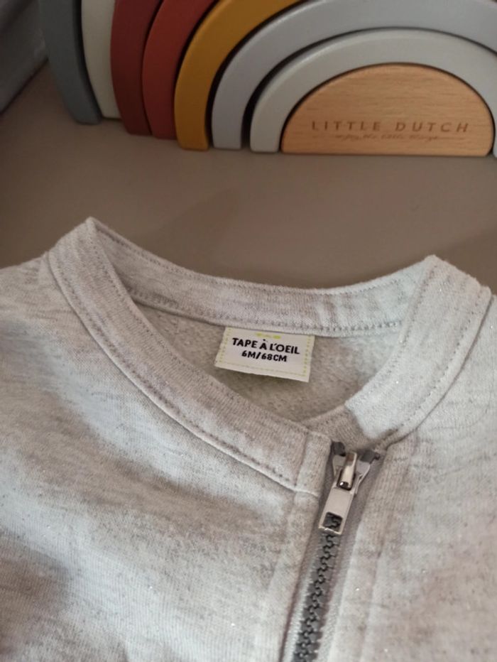 Veste zippée grise pailletée 6 mois TAO - photo numéro 5