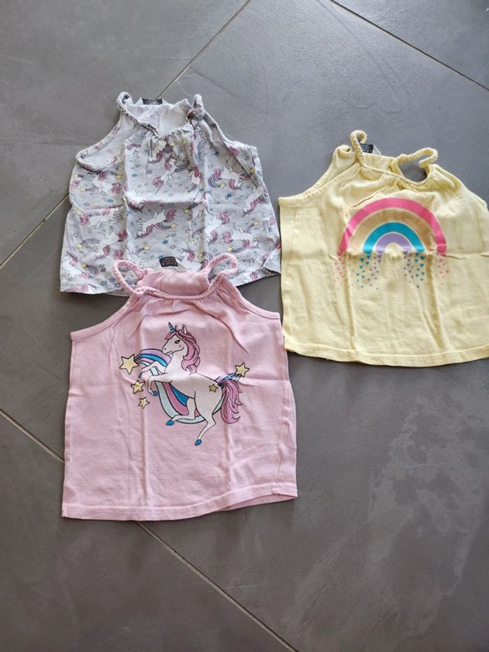 Lot de 3 débardeur motif licorne et arc en ciel bon état bien porté taille 3/4ans marque primark