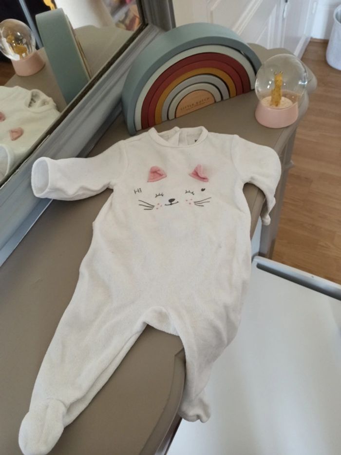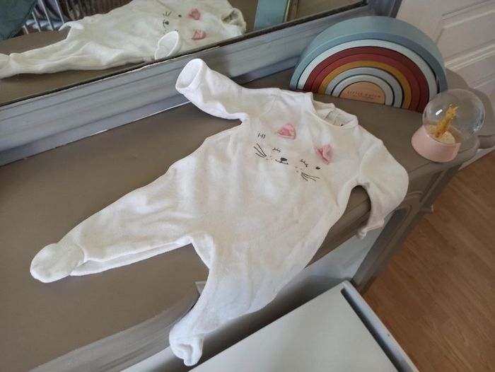 Adorable pyjama blanc KIABI. 3 mois. Porté quelques fois seulement, donc très bon état. Super mignon avec ses petites oreilles roses qui dépassent. S'ouvre et se ferme intégralement par pressions à l'arrière. #3mois_macys76