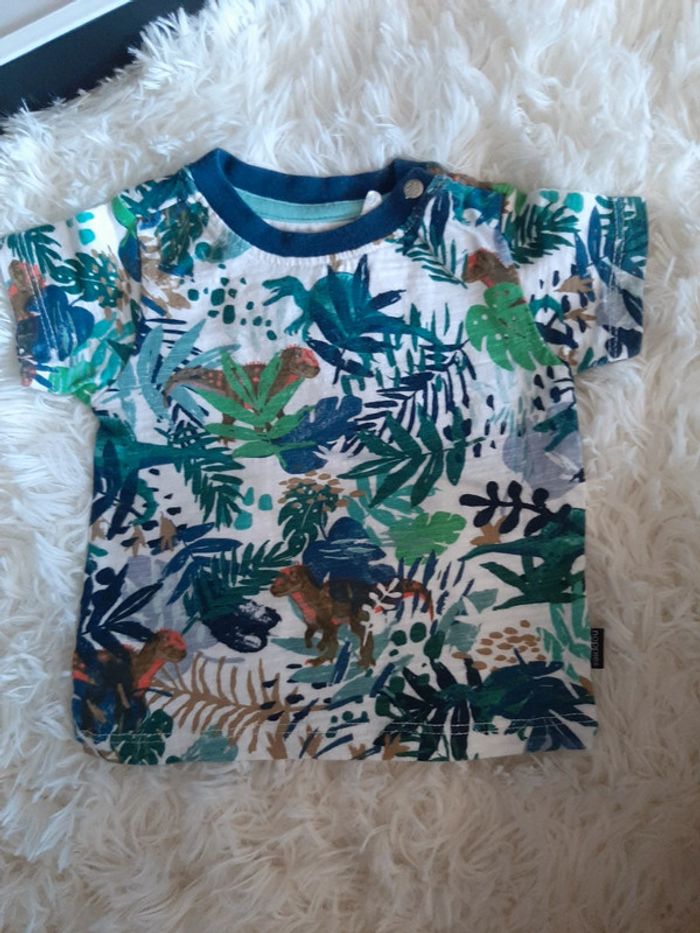 1 tee-shirt dinosaures Noppies 56 cm 1 tee-shirt maman papa qgrain de blé 1 mois (étiquette de taille coupée) 1 short baby club 56 cm Peu portés #mru1mois