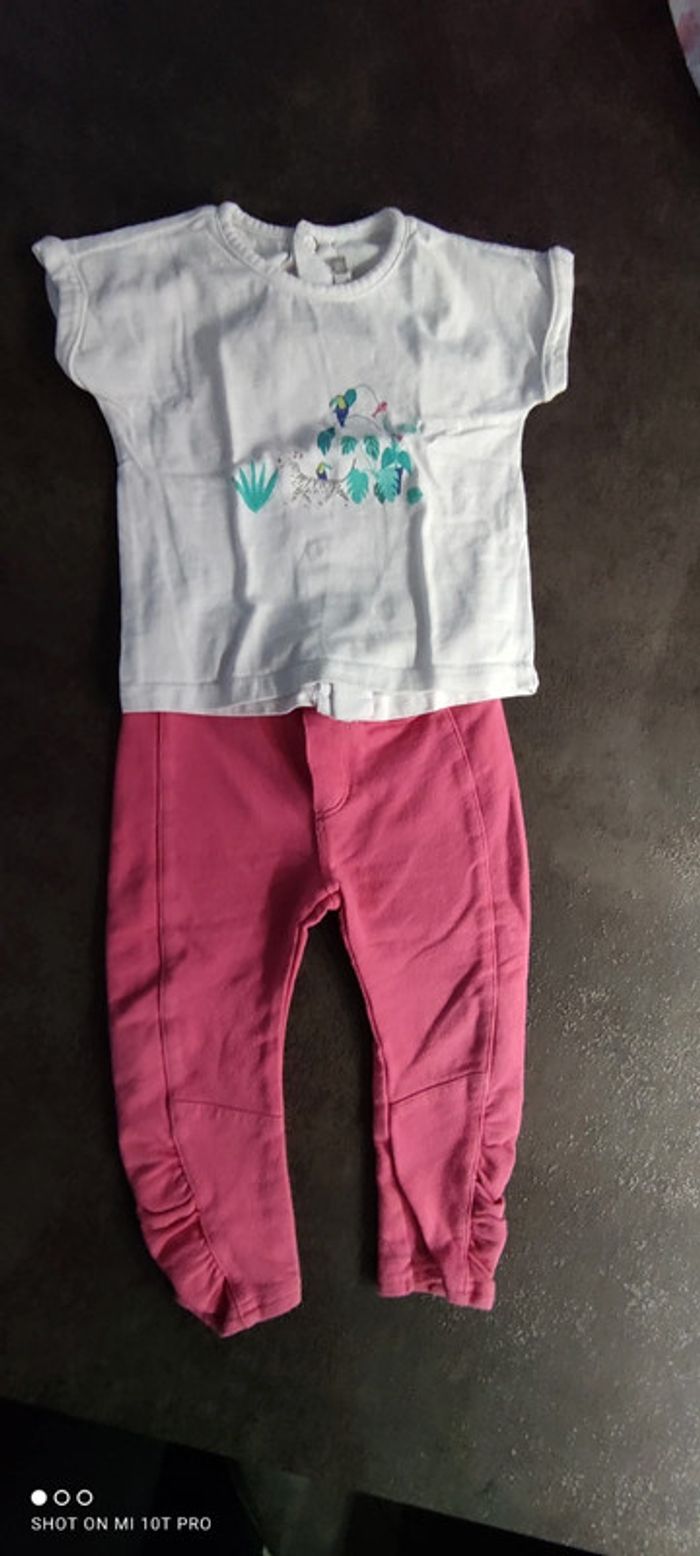 Ensemble leggins rose et tee shirt blanc Taille 18 mois Porté mais en très bonne état général. #layana18mois' #catimini