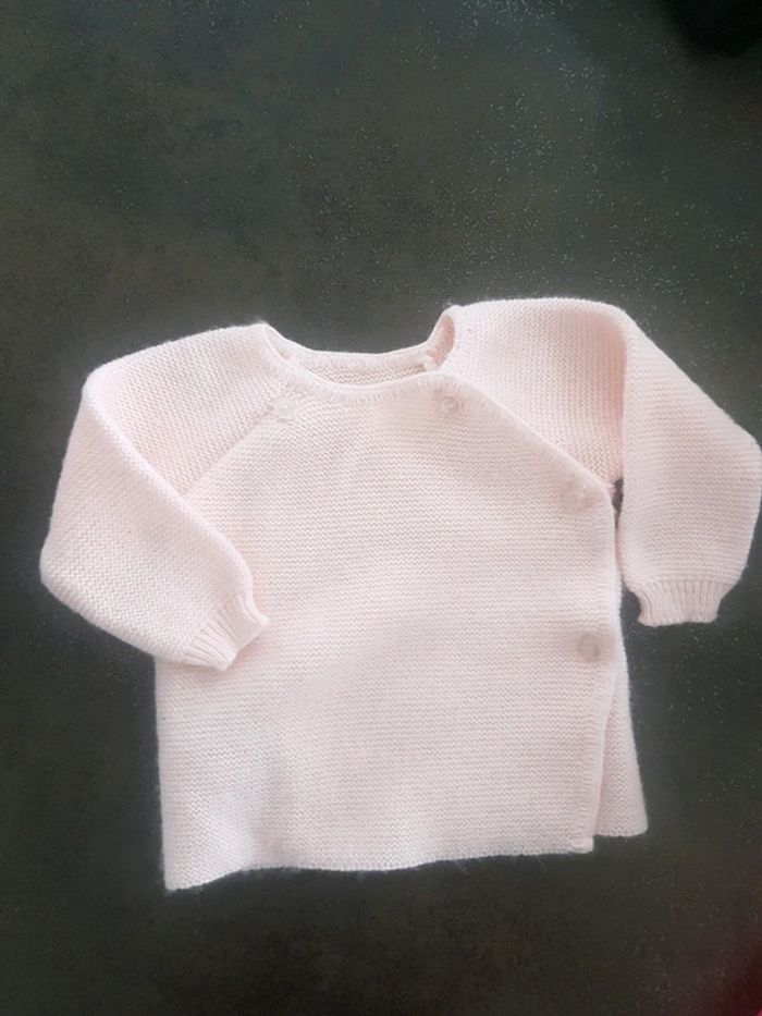 Gilet rose pâle style tricot très chaud. Taille 3/6mois très bonne état juste petit file tiré par endroit voir photos. #layana6mois #layana3mois