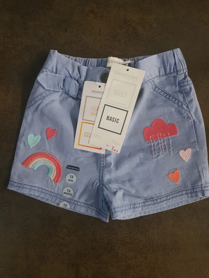 Short jeans décoré neuf acheté en double taille 12mois collection du moment orchestra #layana12mois #orchestra
