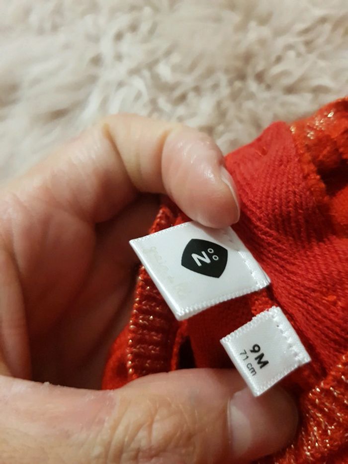 Superbe robe rouge état neuf porté 2x taille 9mois marque z collant fin blanc pailleté neuf. #layana9mois #Noël