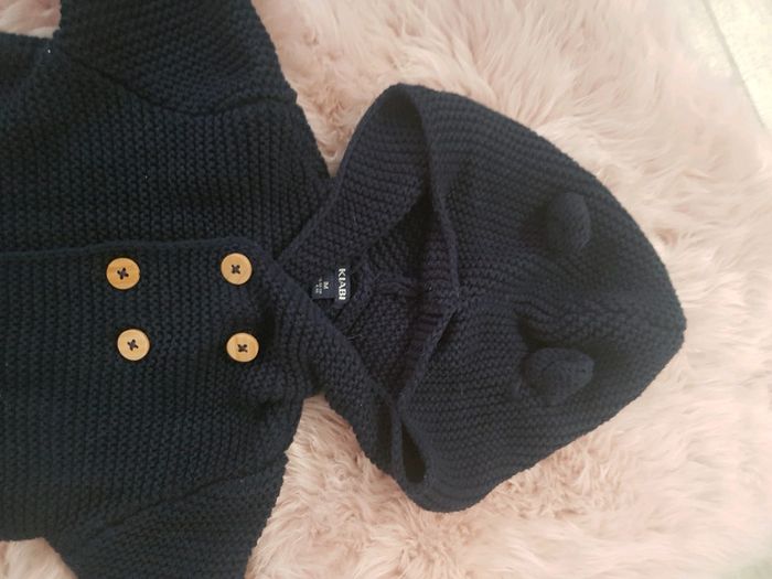 Gilet marine marqué 1mois mais il y a une erreur correspond à taille 3/6mois. Capuche petite oreille trop mignon. Mixte #layana6mois #layana3mois #mixte