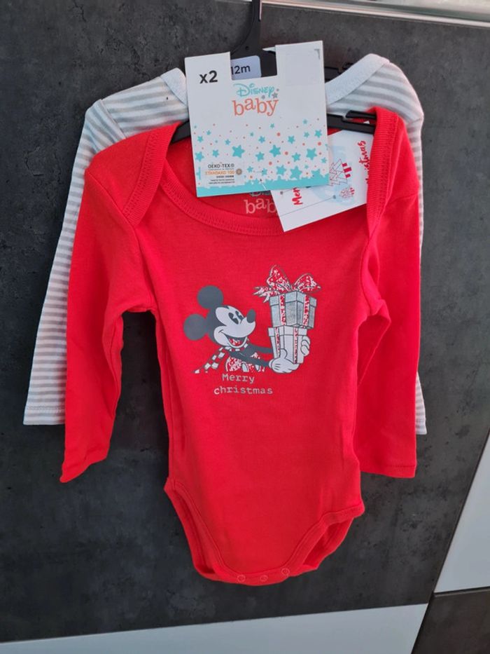 Lot de 2 bodys mickey disney baby taille 12 mois neuf - photo numéro 1
