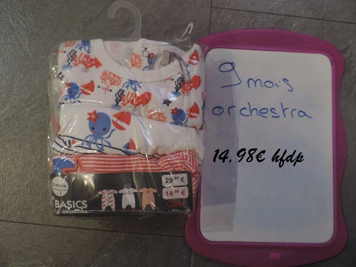 lot de 3 pyjamas orchestra taille 9 mois neuf - photo numéro 1