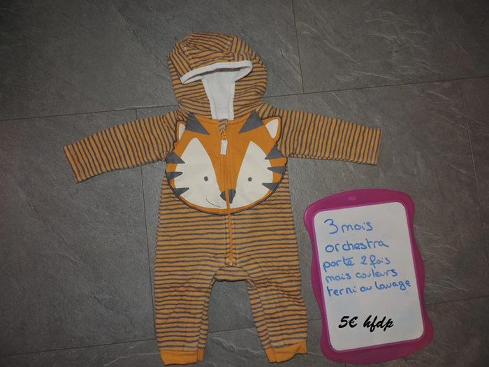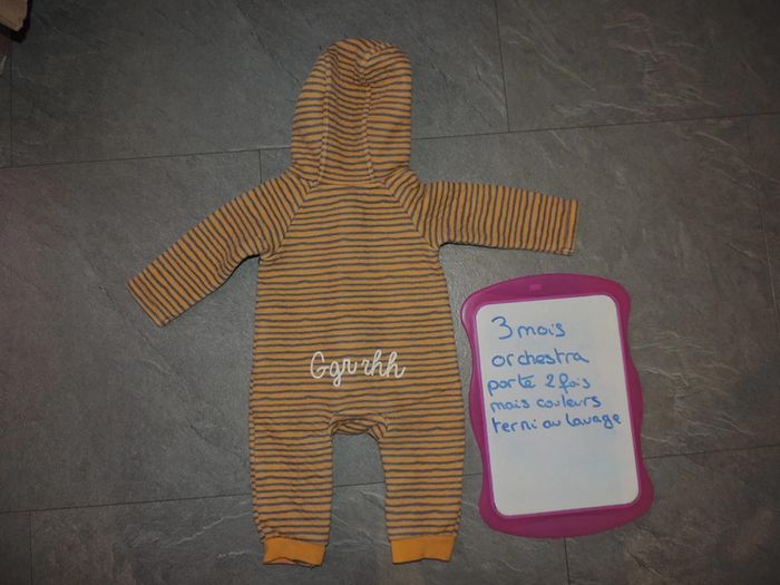 combinaison orchestra porté 2 fois mais couleur terni au lavage taille 3 mois