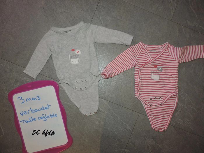 lot de 2 bodys verbaudet réglable taille 3 mois - photo numéro 1