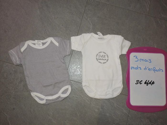 lot de 2 bodys mots d'enfants taille 3 mois - photo numéro 1