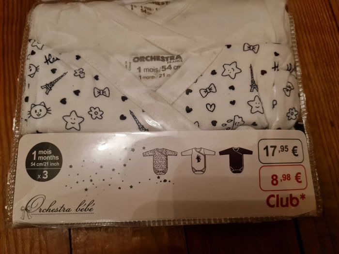 Lot de 3 bodys manches longues orchestra taille 1 mois neuf - photo numéro 1
