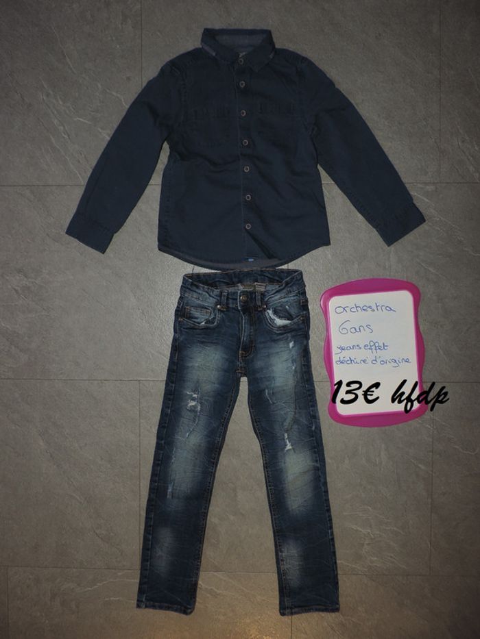 ensemble orchestra 6 ans jeans effet déchiré d'origine - photo numéro 1