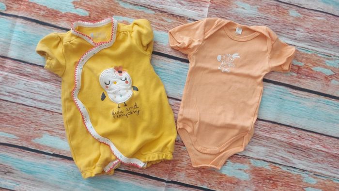 Lot de 1 bodie manches courtes sans marque et une combishort petit béguin 3 mois fille