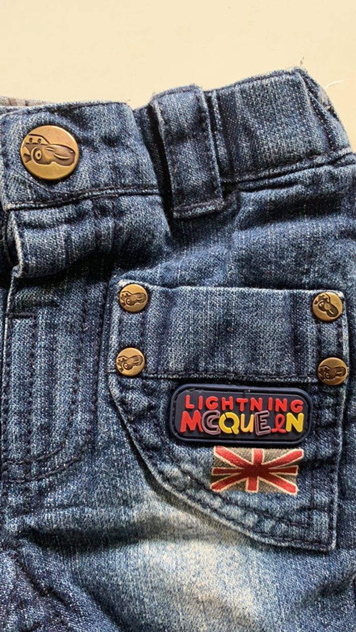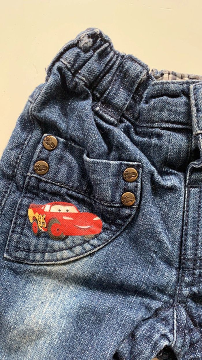 Joli petit jean bien doux et chaud (doublé moltonné) taille un mois Marque Disney. Très bon état Dessins de Cars