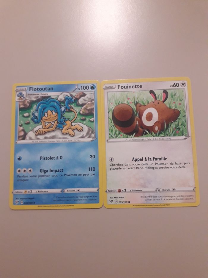 Flotoutan + Fouinette lot de 2 cartes Pokémon neuves