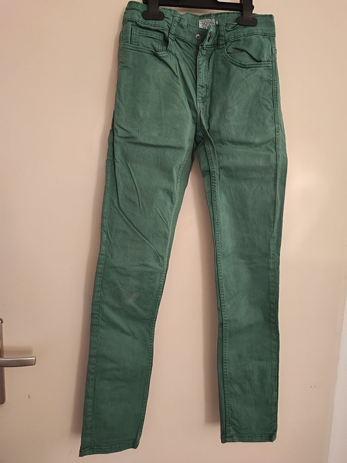 Superbe pantalon garçon En toile Coupe droite En toile Taille 12 ans Coloris vert
