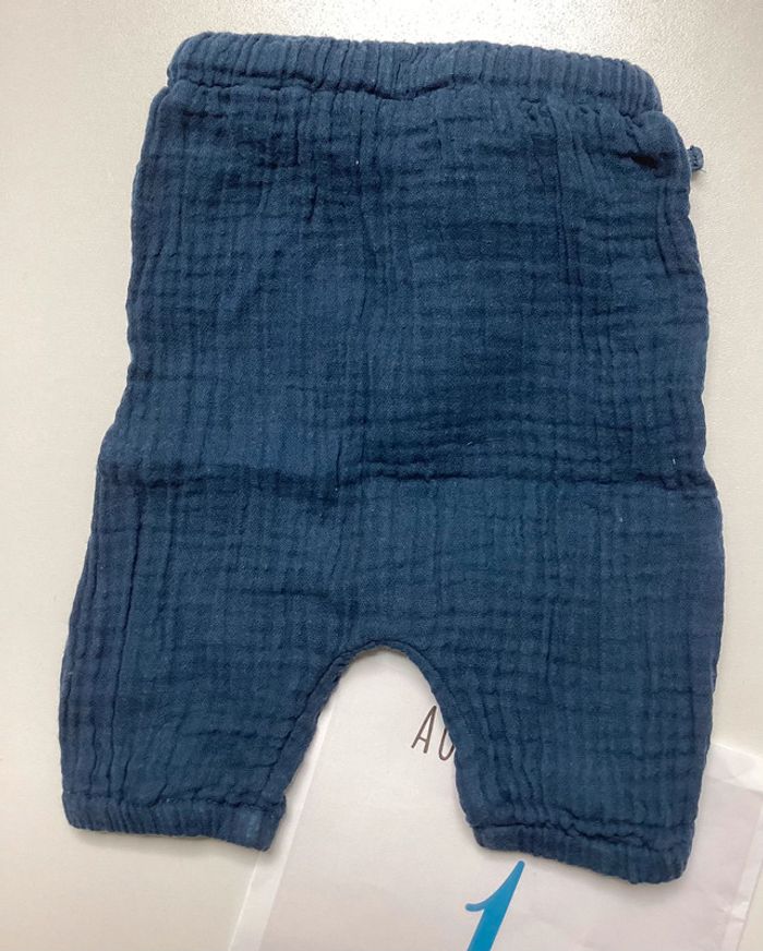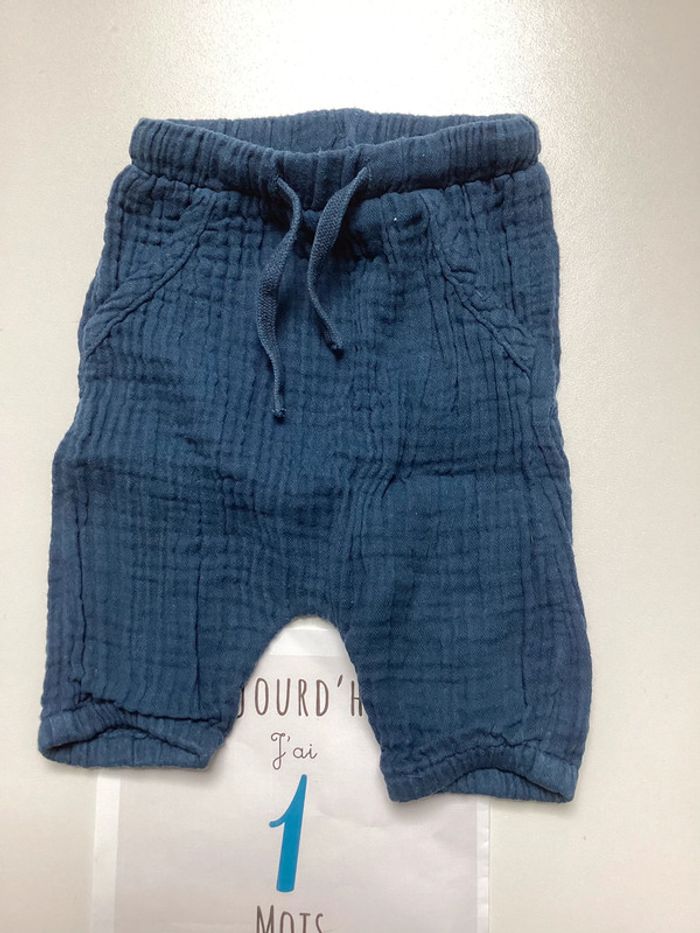 Ensemble composé d’un tee-shirt manches courtes et d’un sarouel en gaze de coton. Très bon état pour le haut, plus usé pour le bas. #hermy76bebe1mois