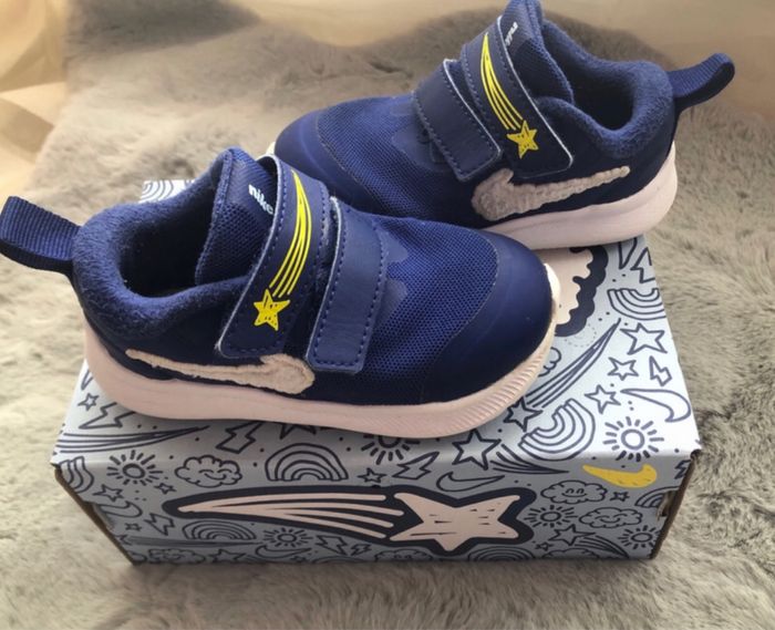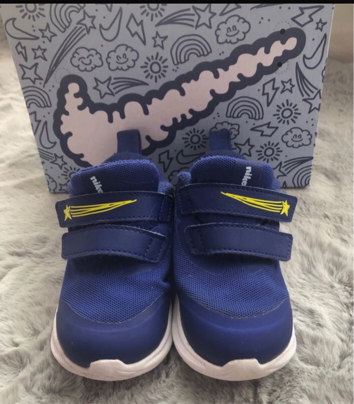 Basket Nike star runner 3 dream de couleur bleu royal et blanc avec scratch pour bébés garçons pointure 22 . La basket est en très bon état et avec sa boîte d’origine.