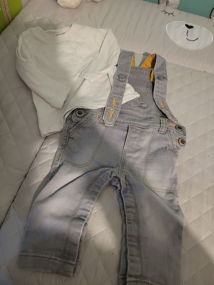 ensemble salopette,tee shirt manche longue en tres bon etat taille 3m kiabi