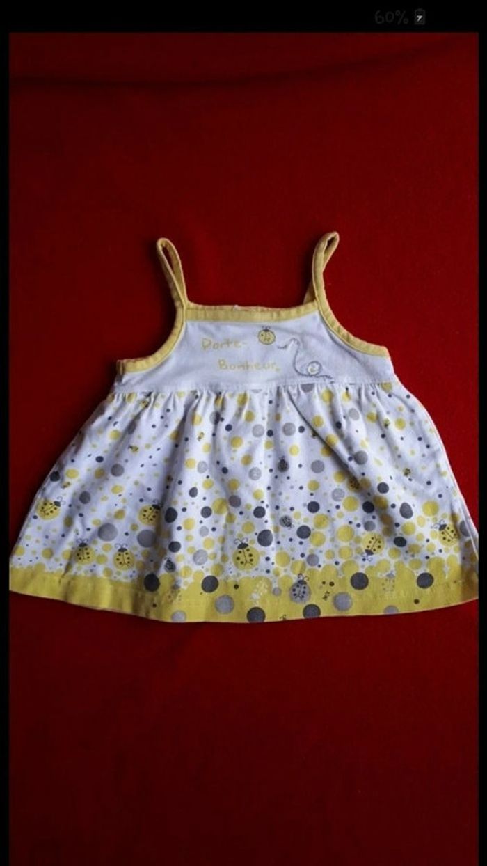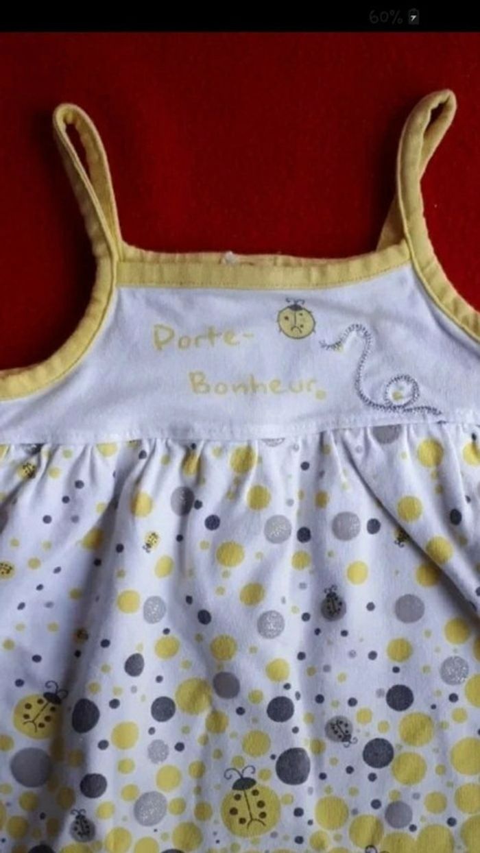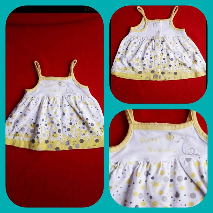 9 mois 71cm Blanc jaune gris argenté à paillettes Motif 🐞 porte bonheur Pressions au dos #9moisfilleevaura76 #t-shirt #Orchestra #9mois