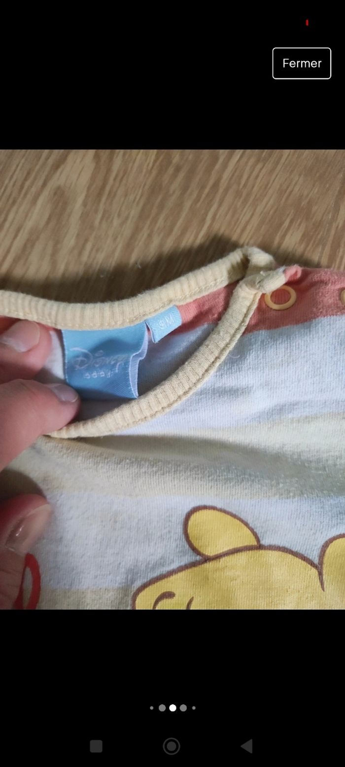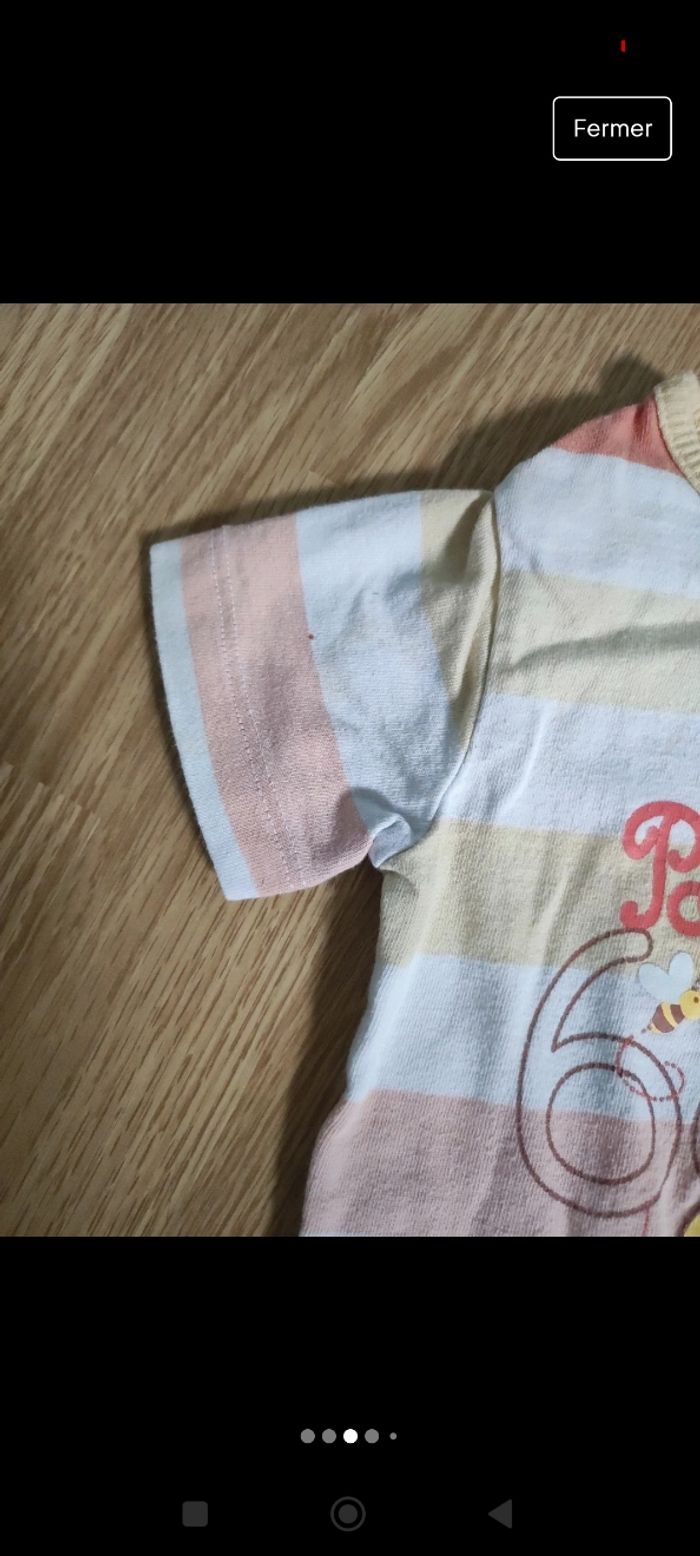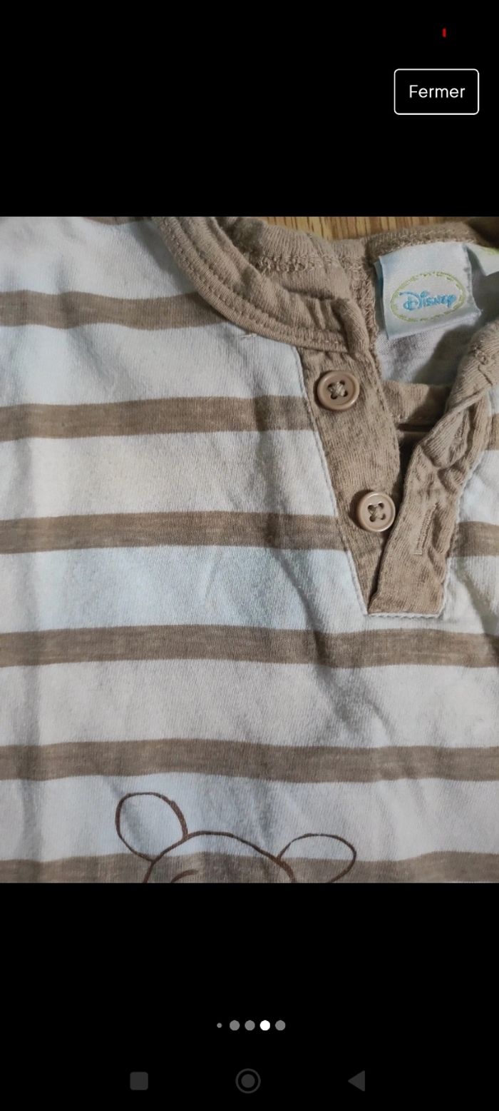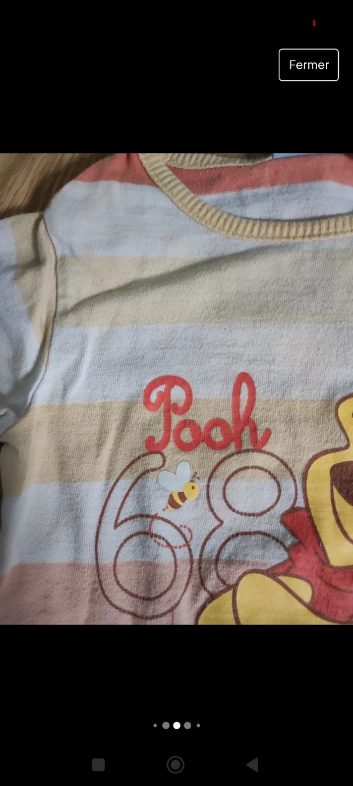 Lot de 2 combi short garçon taille 9 mois Celui de gauche est taché et un peu craquelé Celui de droite un peu taché Voir photo Winnie l'ourson