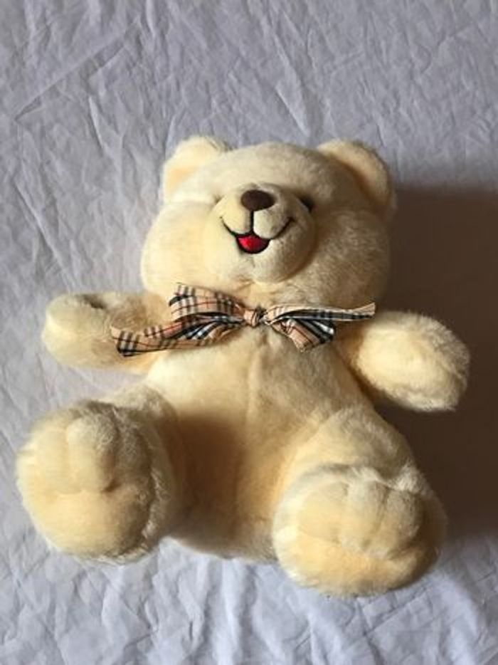 Gros Ourson Crème Flot Ruban Quadrillages Peluche Petits Enfants Bébés - photo numéro 1