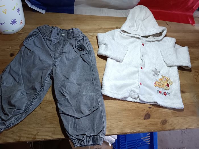 Lot bébé 12 mois contenant 2 articles Description 1 pantalon gris souris 🐭 a rayures 1 veste chaude Winnie l'ourson de chez DISNEY