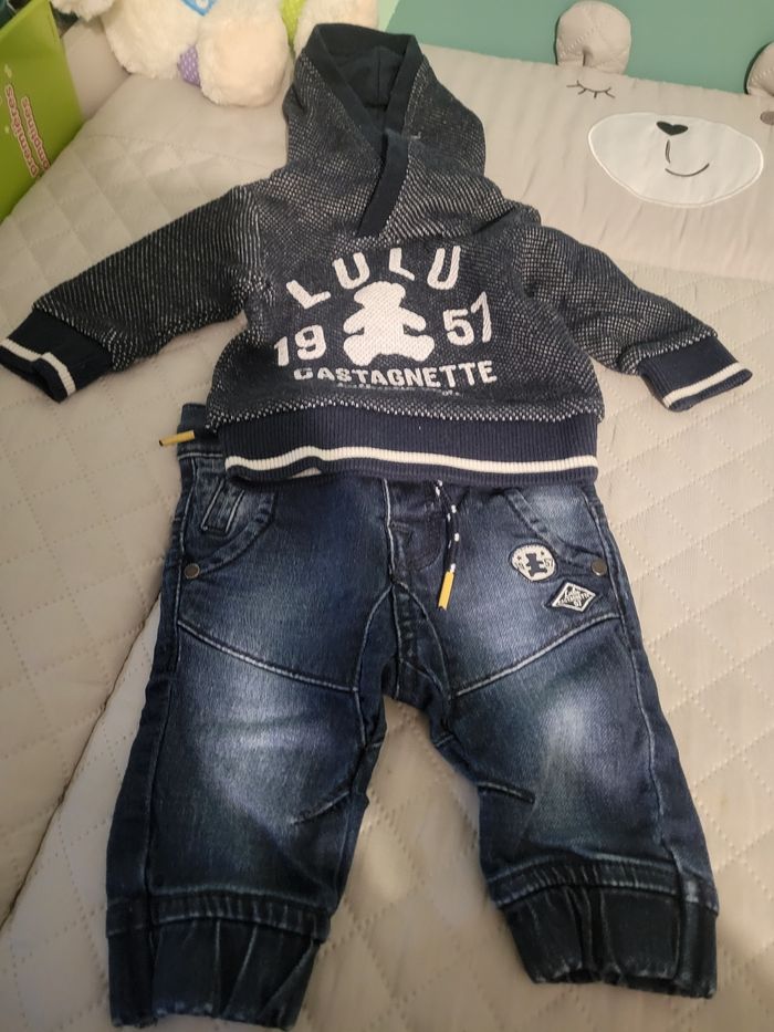 ensemble lulu castagnette jean pull a capuche taille 3m en tres bon etat