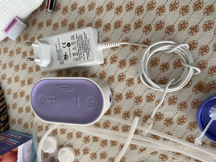 Tire lait 🥛 électrique Lansinoh Compact (je n’ai plus les boites en carton..) 📦 Lot contenant: - pompe compact + prise électrique (sur secteur uniquement) - tube d’aspiration simple + embout et tubes pour une double utilisation - téterelles de différentes tailles: 2 de 36 mm, 2 de 25 mm et 1 de 30,5 mm - 2 biberons 🍼 avec couvercles + 1 couvercle de secours + 1 tétine avec embout pour fixer sur le bibi + 2 têtes de pompage avec valves + 1 valve blanche de secours - un petit tube de crème à la lanoline - une boîte de 50 sachets de conservation pour le lait Peu utilisé il est en parfait état. Je le vends car j’ai ce qu’il faut à l’hôpital