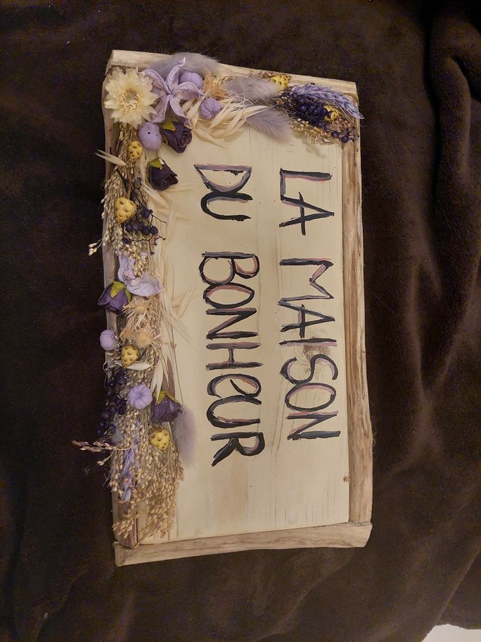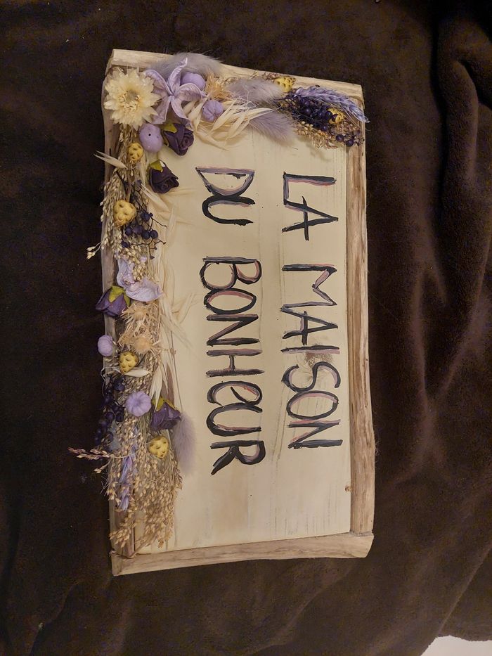 Cadre bois avec fleurs séchées. "La maison du bonheur "
