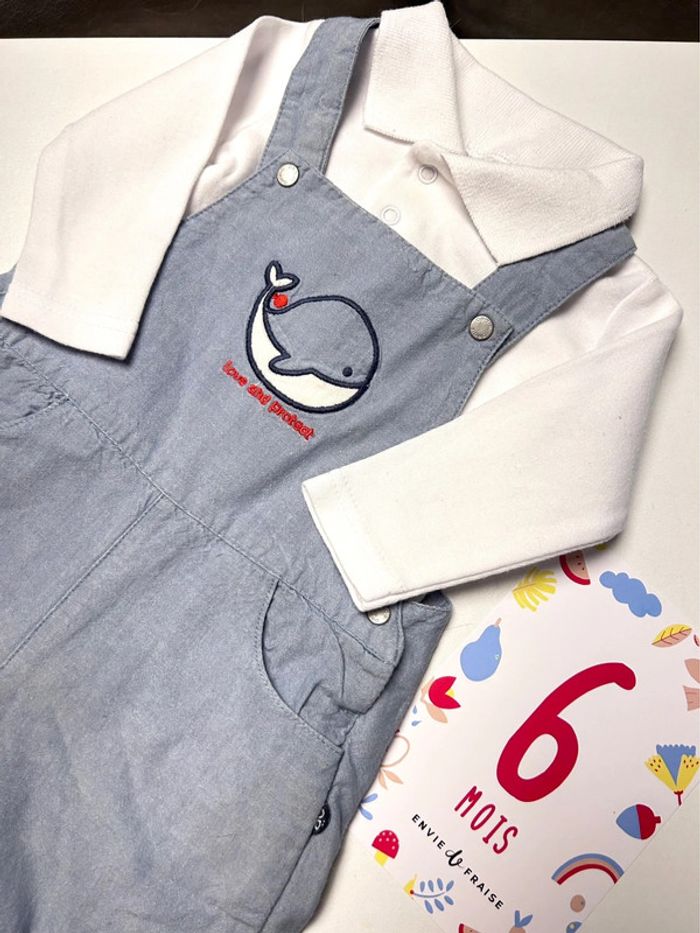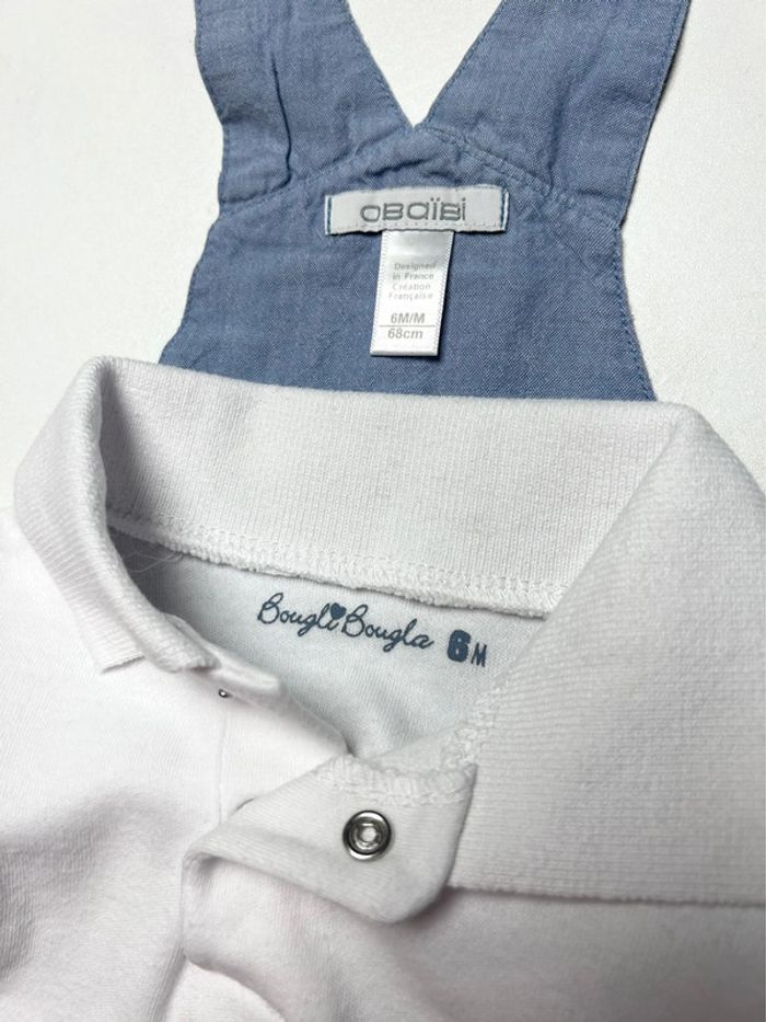 Ensemble salopette de la marque Obaïbi et body polo de la marque Bougli Bougla • Taille 6 mois • Très bon état • Les articles peuvent être vendus séparément (contactez moi) Maison non fumeur Pas d’animaux en contact avec bébé Lessive maison au savon de Marseille