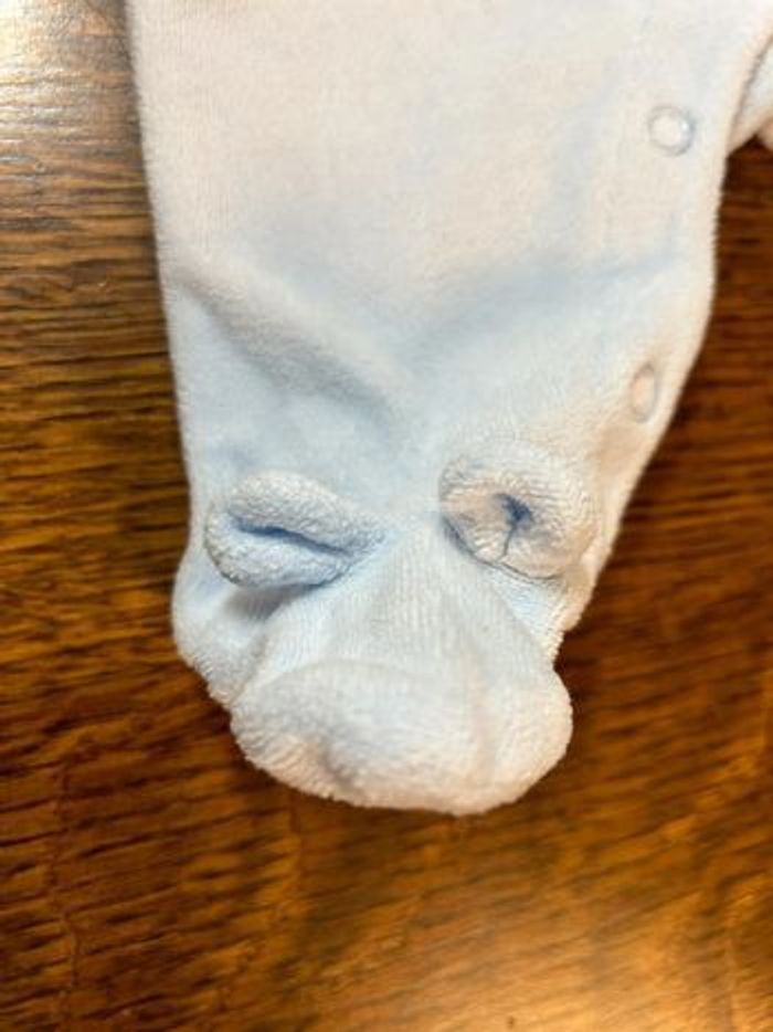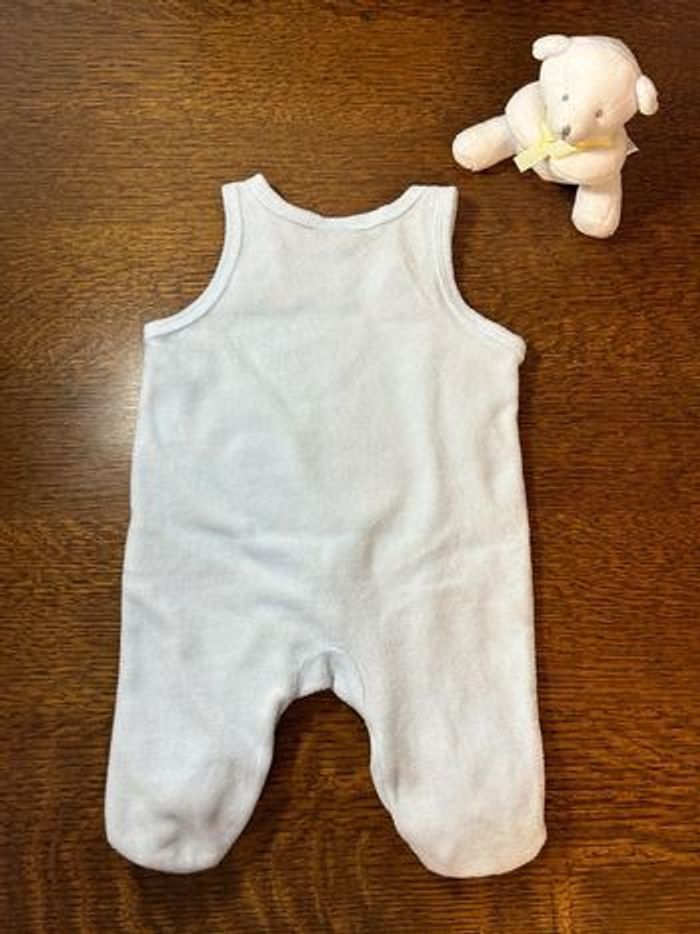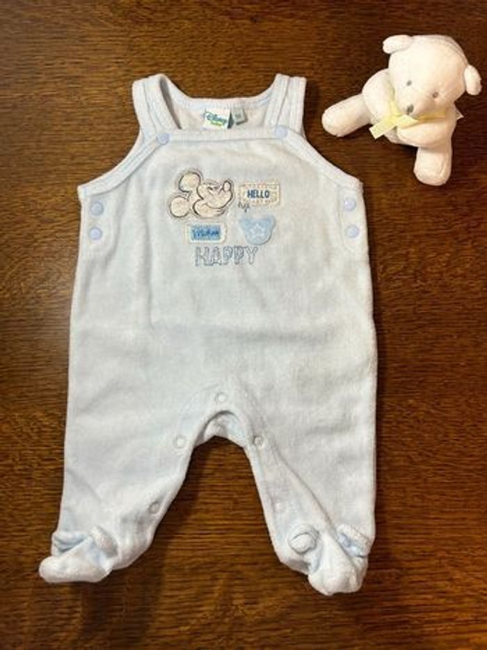 Pyjama salopette en velours de la marque Disney Baby • Taille 1 mois • Très bon état • Tout doux • Petites oreilles sur les pieds (c’est trop chou porté) • Maison non fumeur • Pas d’animaux en contact avec bébé • Lessive maison au savon de Marseille, pas d’assouplissant utilisé