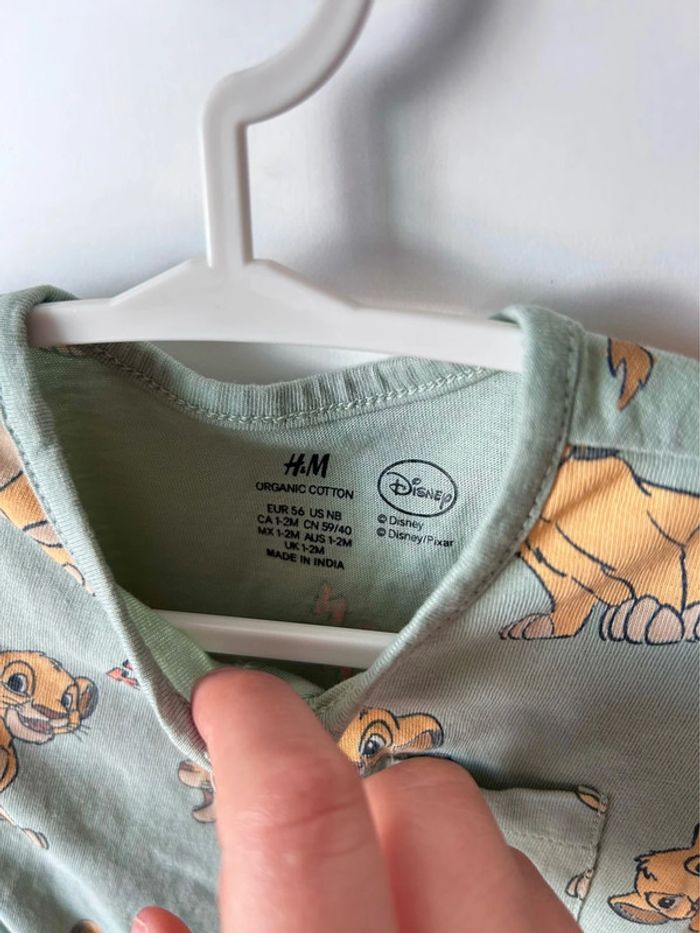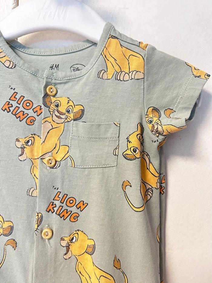 Combinaison Simba, courte, de la marque H&M avec Disney • Taille 1-2 mois (mais peut être porté encore un peu après, h&m taille un peu grand je trouve) • Totalement neuve, je l’ai simplement lavé • Boutons sur le buste, pressions à l’entre jambe pour faciliter le change Maison non fumeur Pas d’animaux Lavé avec une lessive faite maison au savon de Marseille