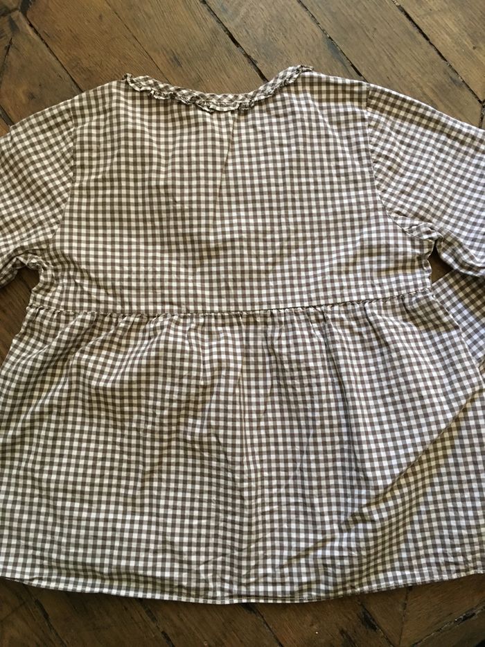 Petit top Jacadi à jabot en vichy marron et blanc Très bon état général 8 ans
