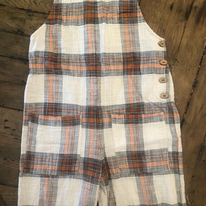 Combi large Zara écossaise Nouée aux épaules 2 poches plaquées devant zip dans le dos boutons en bois 13 ans
