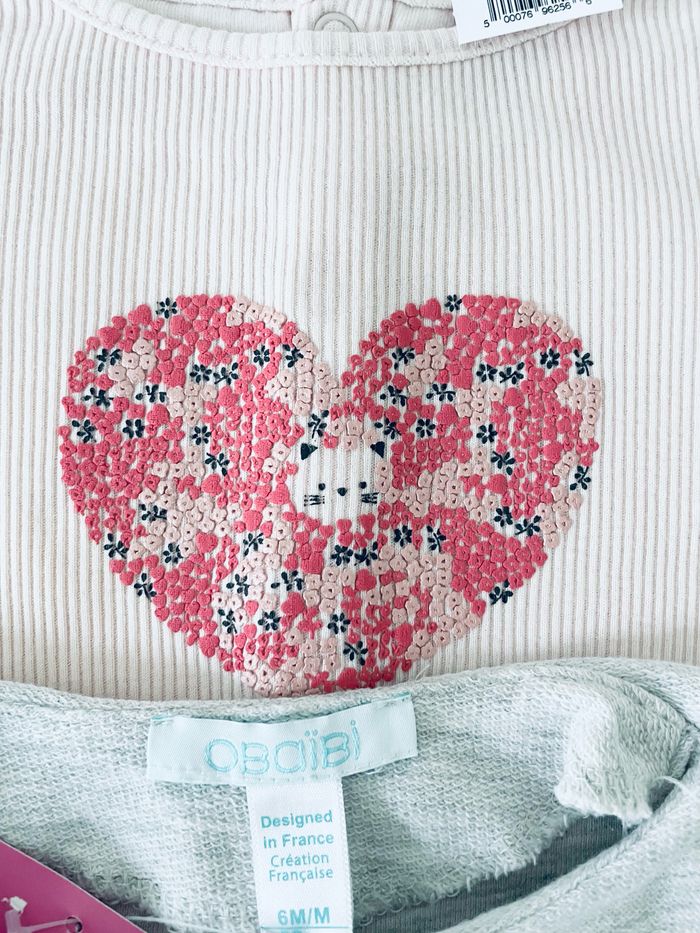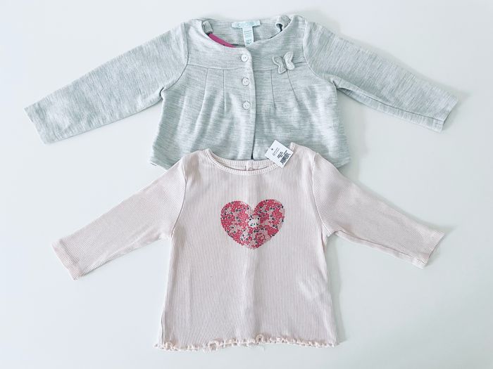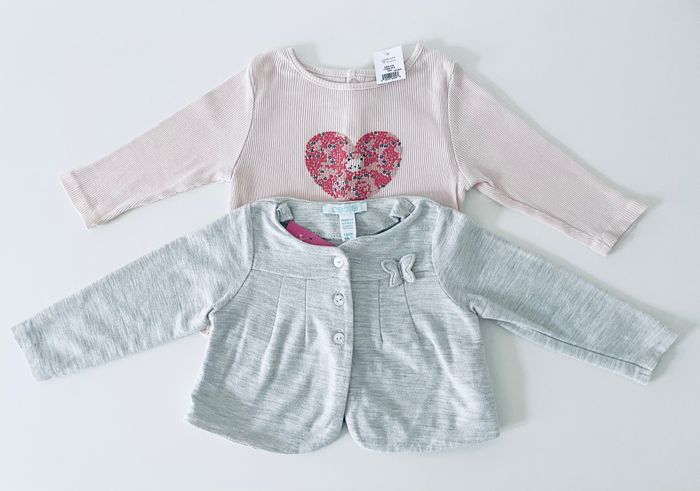 Magnifique lot d’une veste et d’un haut manche longue Obaïbi Taille 6 mois Article neuf avec étiquette