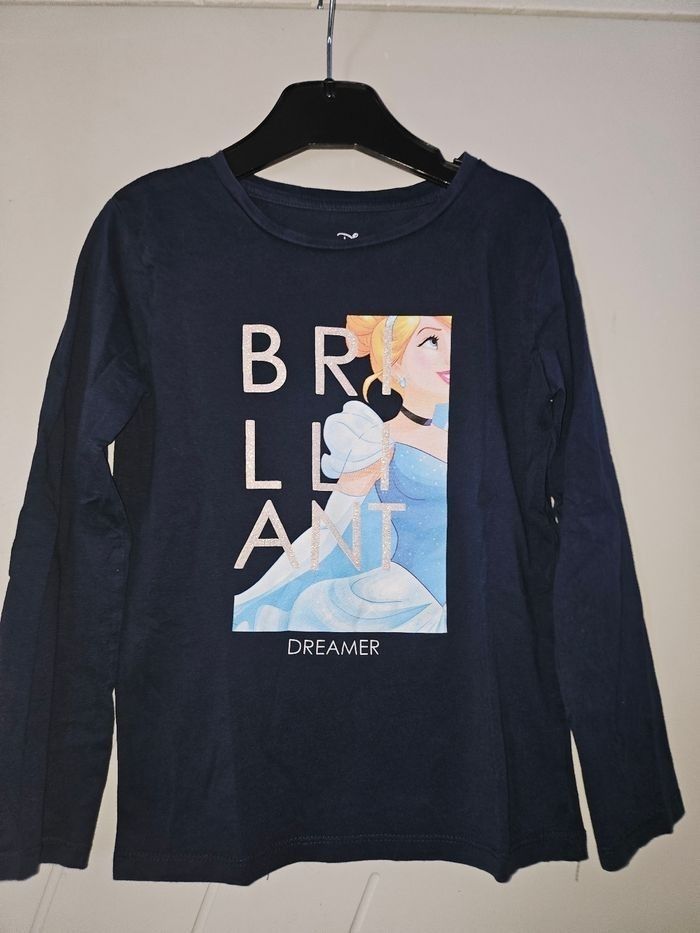 T-Shirt manches longues bleu marine motif Cendrillon en parfait état, peu porté. Taille 8 ans, marque Disney