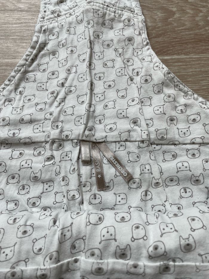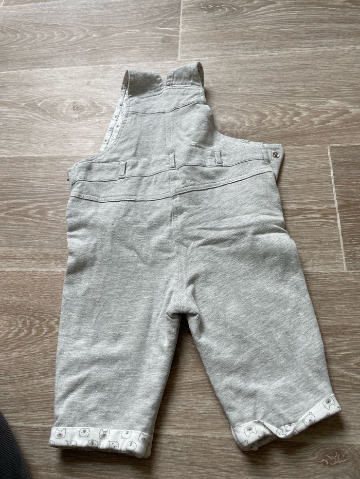 Salopette grise de la marque orchestra en très bon état, taille six mois avec des pressions à l’entrejambe