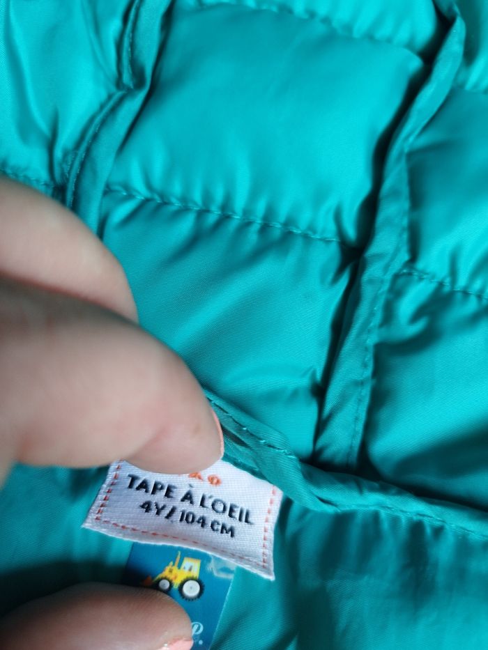 Doudoune fine idéal automne ou début printemps De chez Tape à l'oeil Taille 4 ans Petite tache sur le devant et un peu décousu a la capuche ( voir photo ) Reste tout de même en très bon état