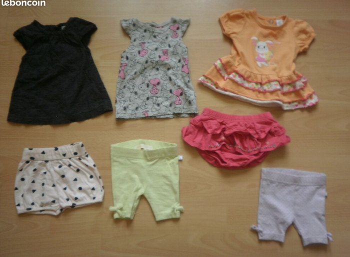 Bonjour, Je vends ce lot d'Eté pour Bébé Fille en taille 1 mois. Composé de robes, leggings, shorts, etc ... En très bon état, certaines pièces sont neuves. Prix demandé : 10€ le lot complet.
