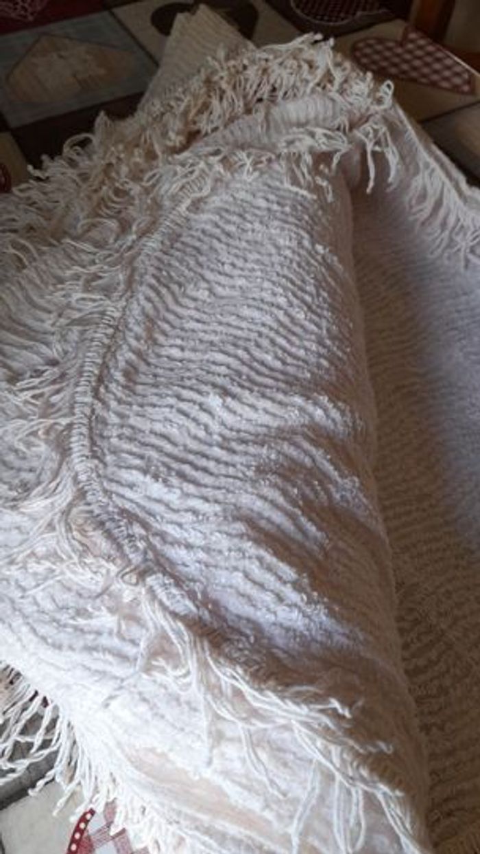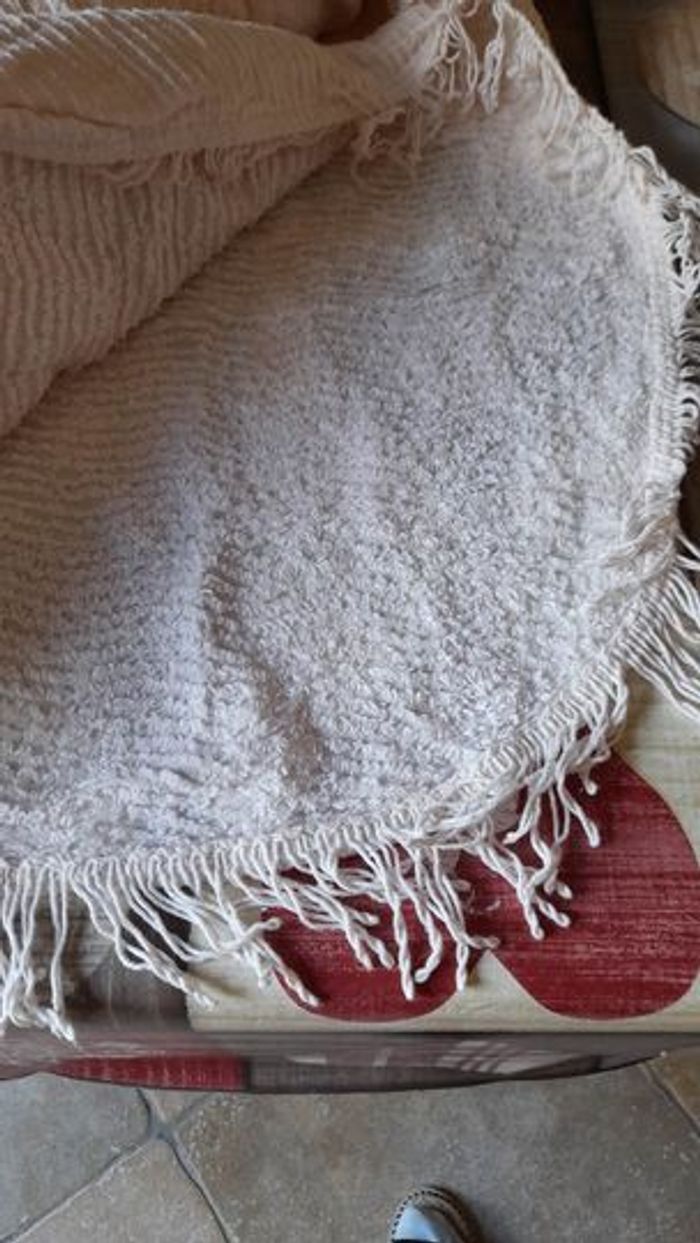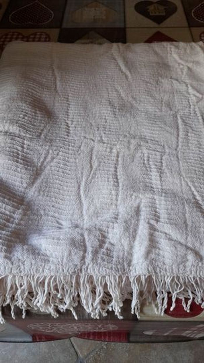 Couvre-lit 2 personnes à franges couleur crème 220cm X 250cm parfait état