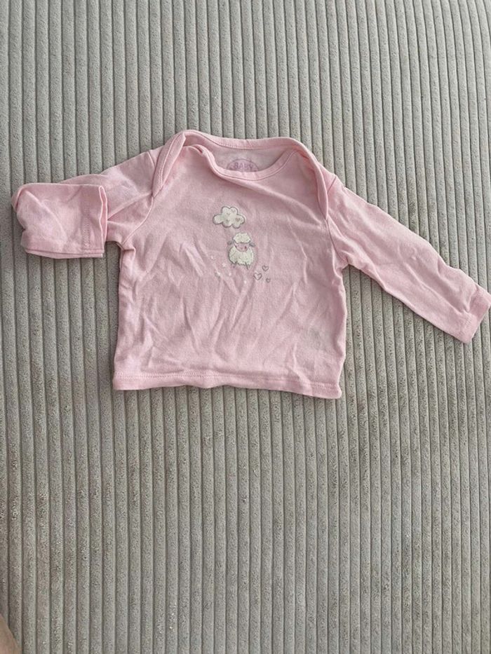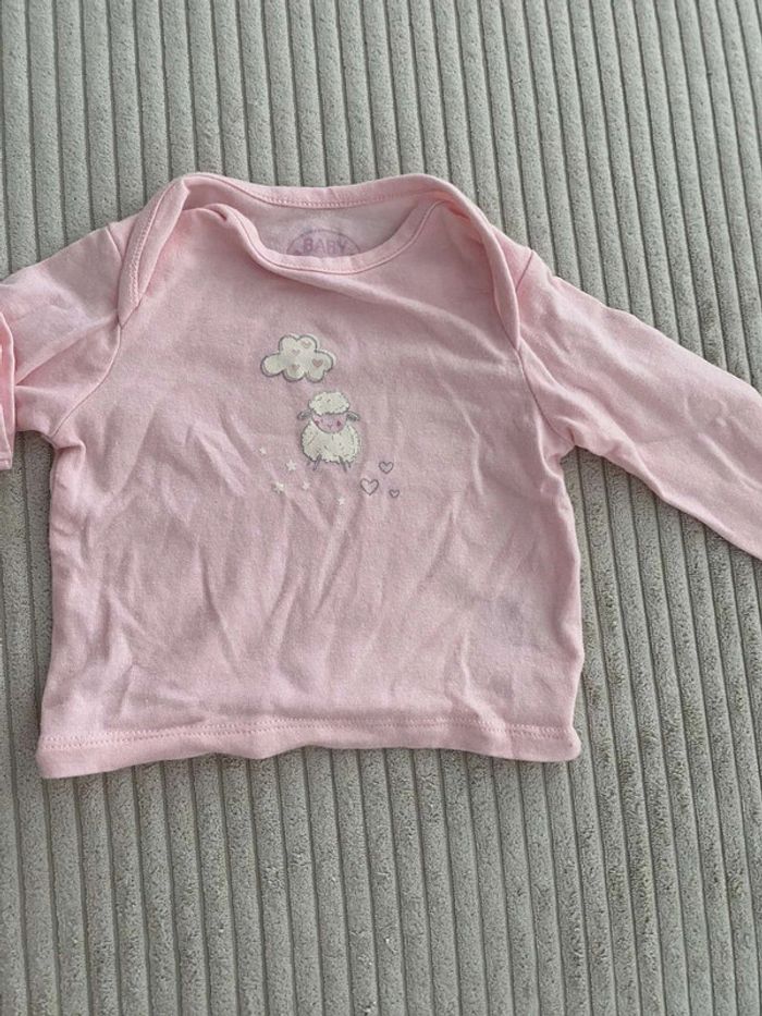 Teeshirt manche longue pyjama 50/56 cm rose baby
