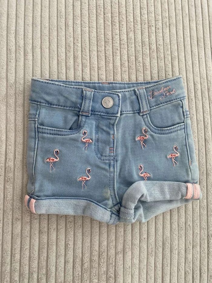 short orchestra taille 6 mois bleu claire flamant rose voir photo une petite tache le short a été porté une fois
