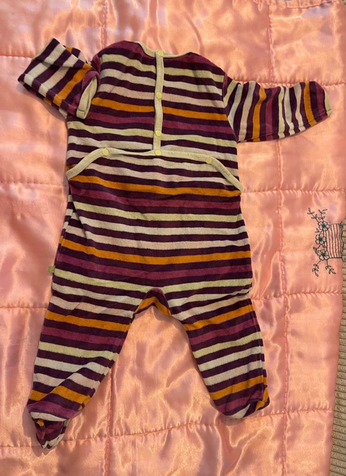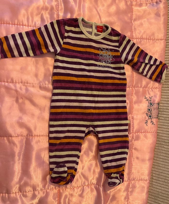 - Pyjama velours taille 6 mois babygros juste des petits diamand sont partis et pied gauche de la coutur